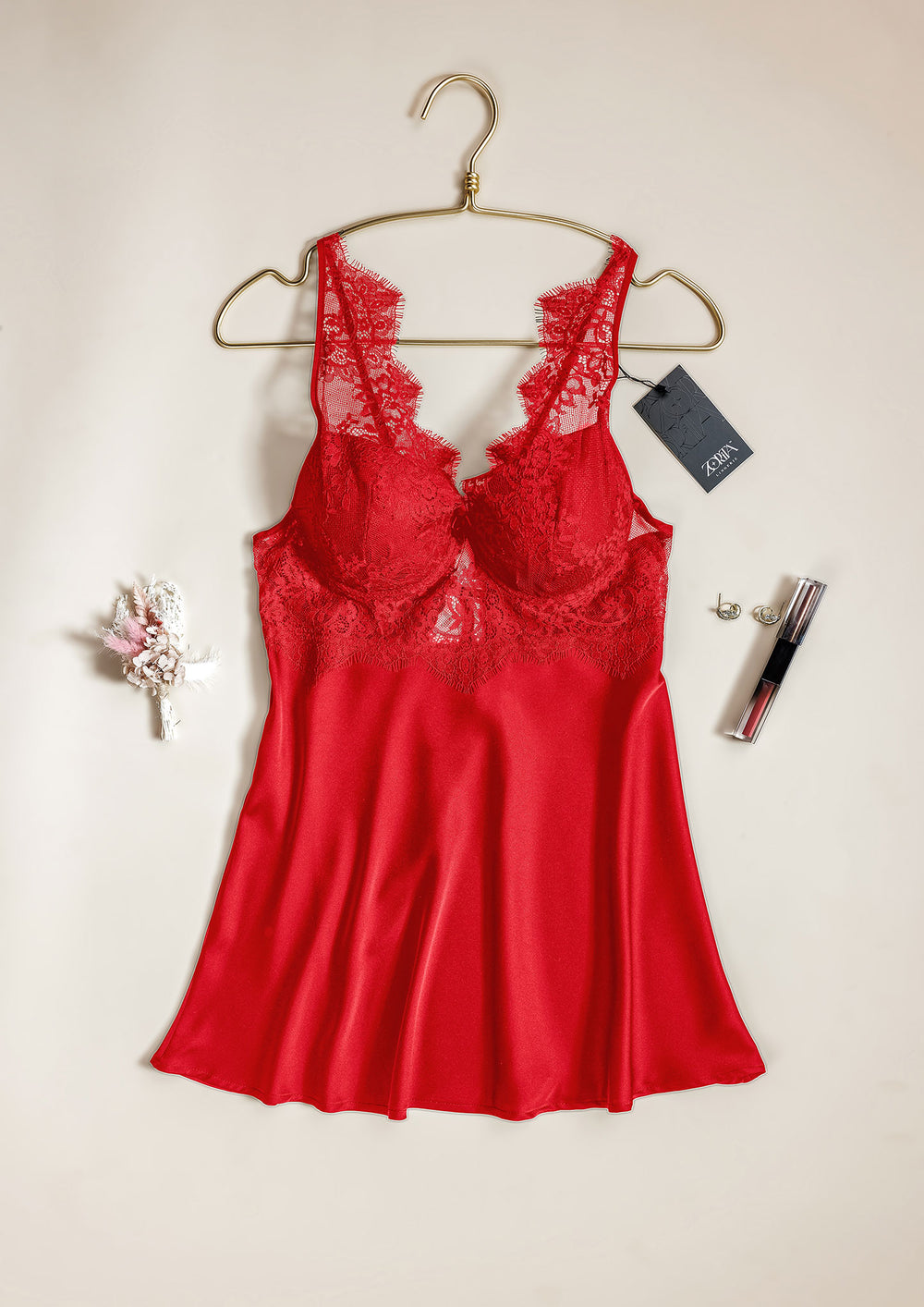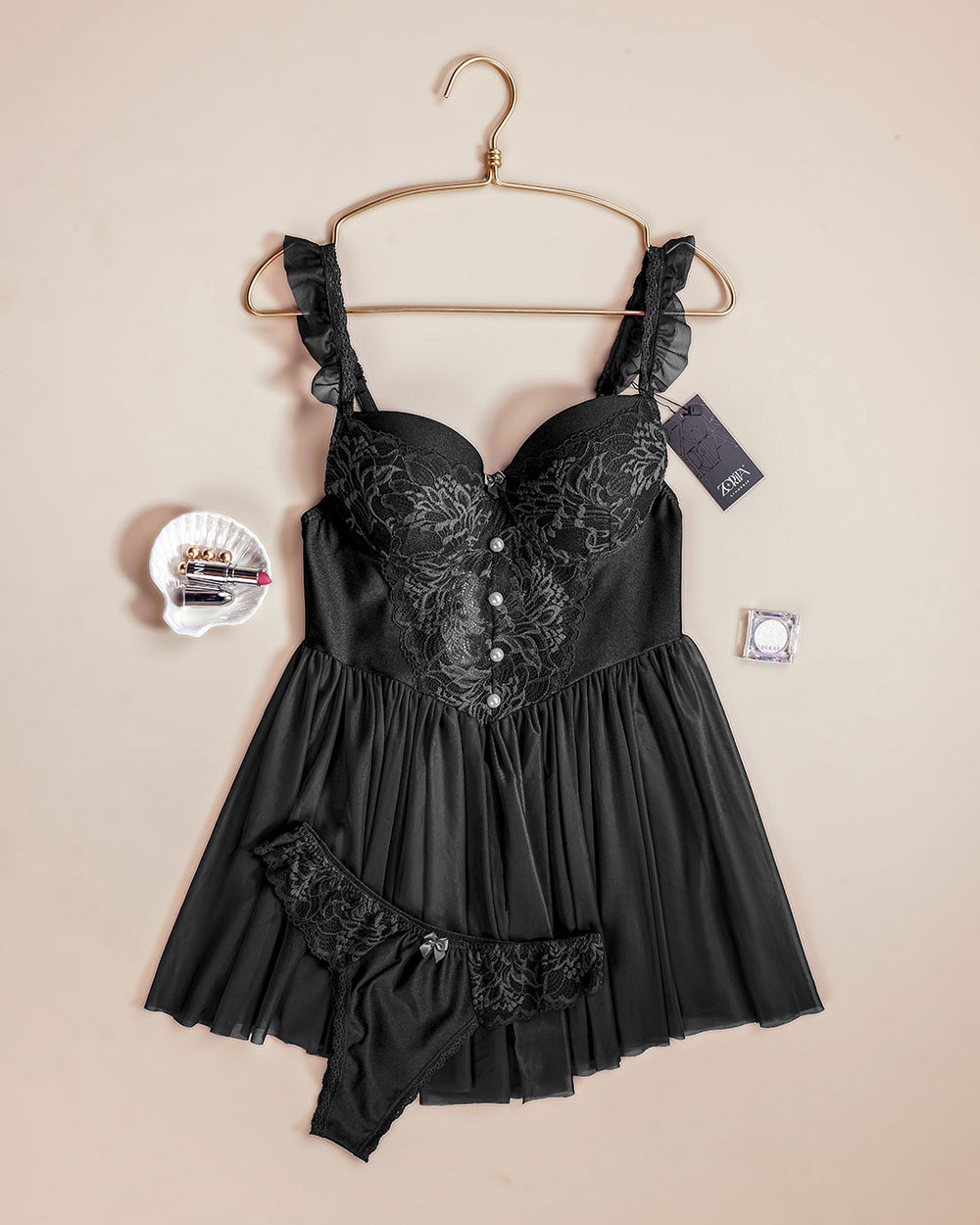 قميص نوم بيبي دول ساتان بلمسة دانتيل