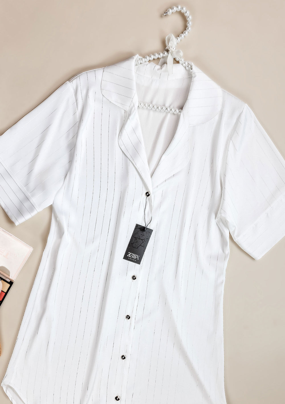 قميص ساتان ينساب برقة على بشرتك. تفاصيل الأزرار تضيف لمسة أنثوية ناعمة. أنوثة بلا مجهود، في كل لحظة. مصنوع من مزيج ساتان ناعم 97% بوليستر، 3% سباندكس