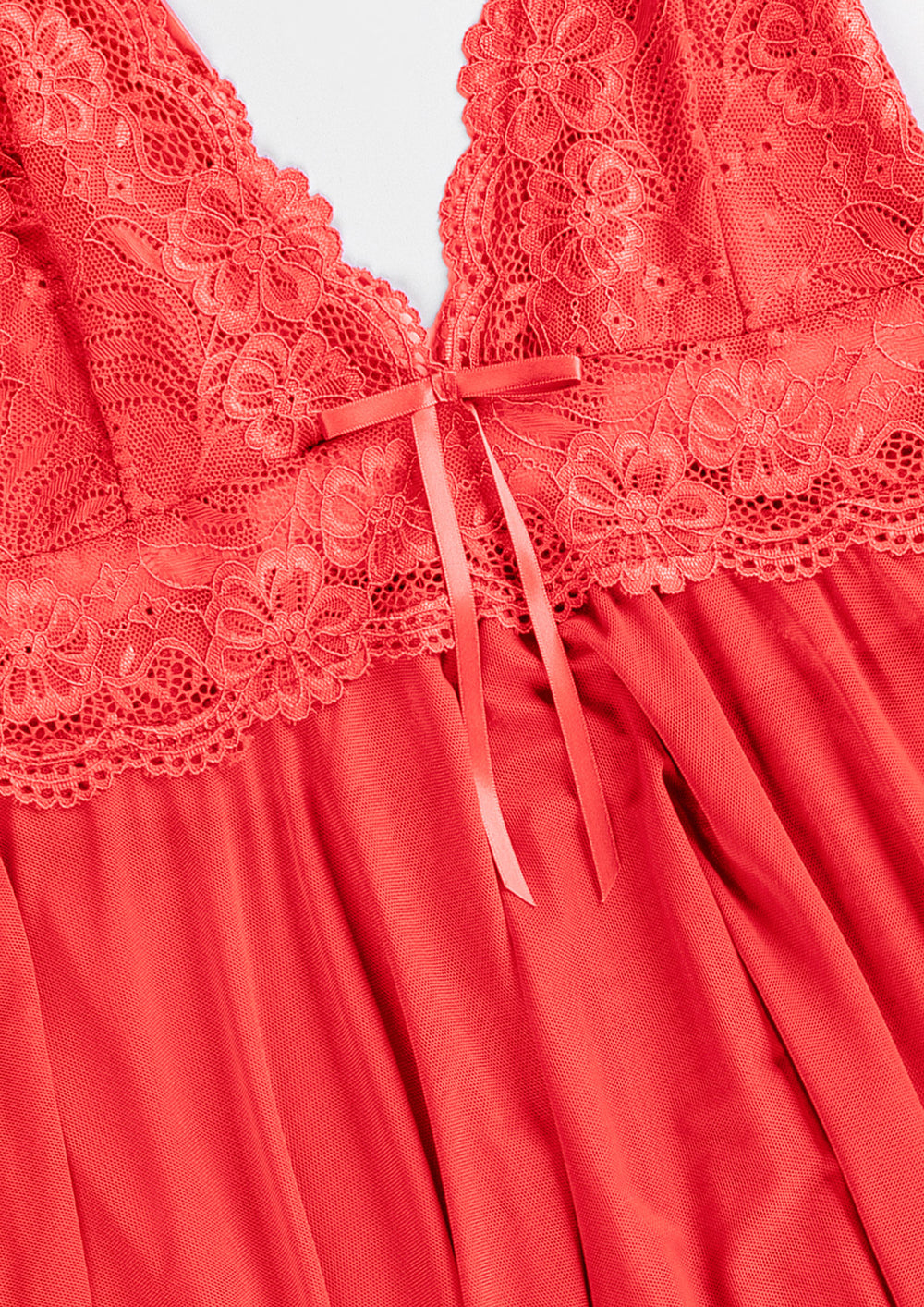 تلامس الشبك بشرتك برقة، تمنحك إحساسًا خفيفًا بالكاد يُشعر. ينساب هذا البيبي دول الدانتيل بلا مجهود، ليخلق إطلالة ساحرة تتحرك معك. تضيف حواف الدانتيل الناعمة لمسة من الأناقة الرفيعة، لتجعل كل لحظة مميزة. مع سروال داخلي متناسق، هو سرك للشعور بالإشراق والثقة. مصنوع من النايلون 100%، يعدك بتجربة ناعمة ومرنة.