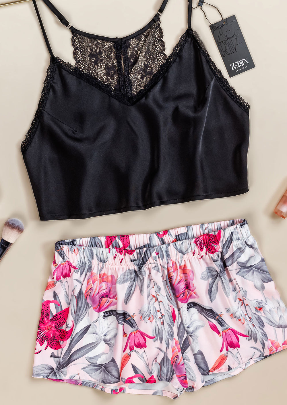 انغمسي في عالم الأحلام الحريرية مع طقم بيجاما ساتان القصير. هذا القماش الخفيف ينساب برقة على بشرتك، ليمنحك برودة وأناقة بلا مجهود. ارتقي بروتينك الليلي بلمسة من الأناقة الراقية. 97% بوليستر، 3% سباندكس