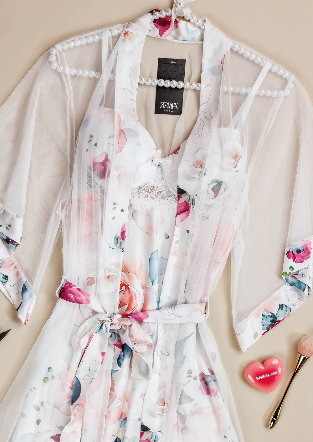 روب ساتان مزين بالورود