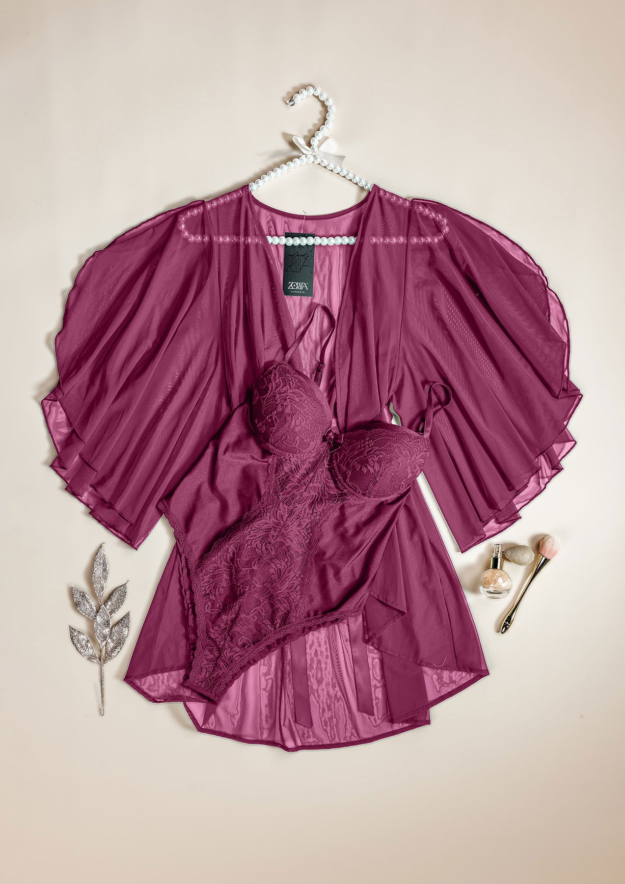 استمتعي بالراحة والأناقة مع طقم أردية تيدي! مصنوع من ساتان ناعم ومرن وتفاصيل دانتيل رقيقة، يتميز هذا الطقم برداء شبكي لمزيد من الراحة، وكوب مبطن بأشرطة قابلة للتعديل لملاءمة مثالية. أضيفي لمسة من الفخامة إلى مجموعة ملابسكِ المريحة!