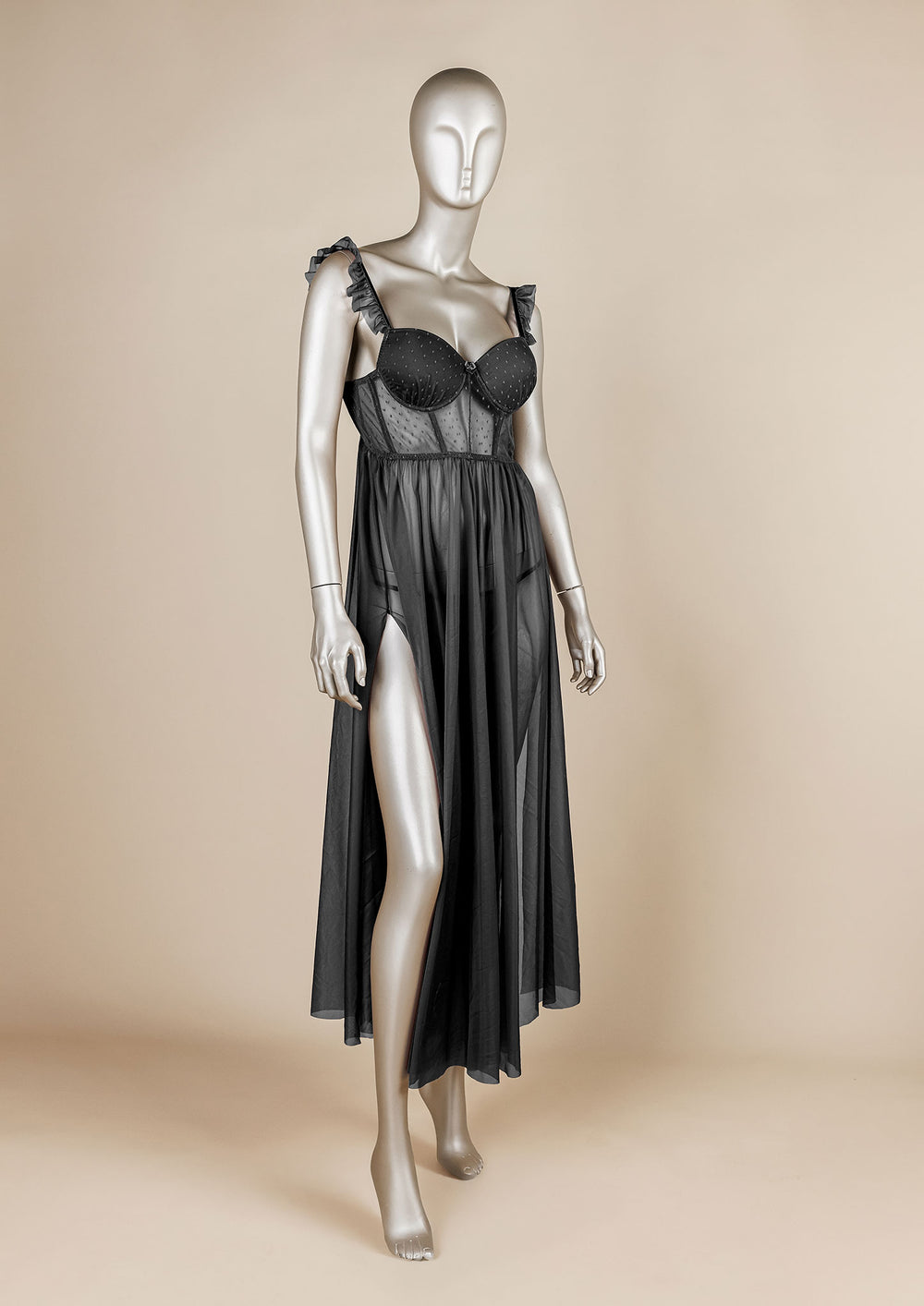 مصنوع من شبك النايلون 100%، هذا الفستان يعبر عن ثقتك بنفسك.