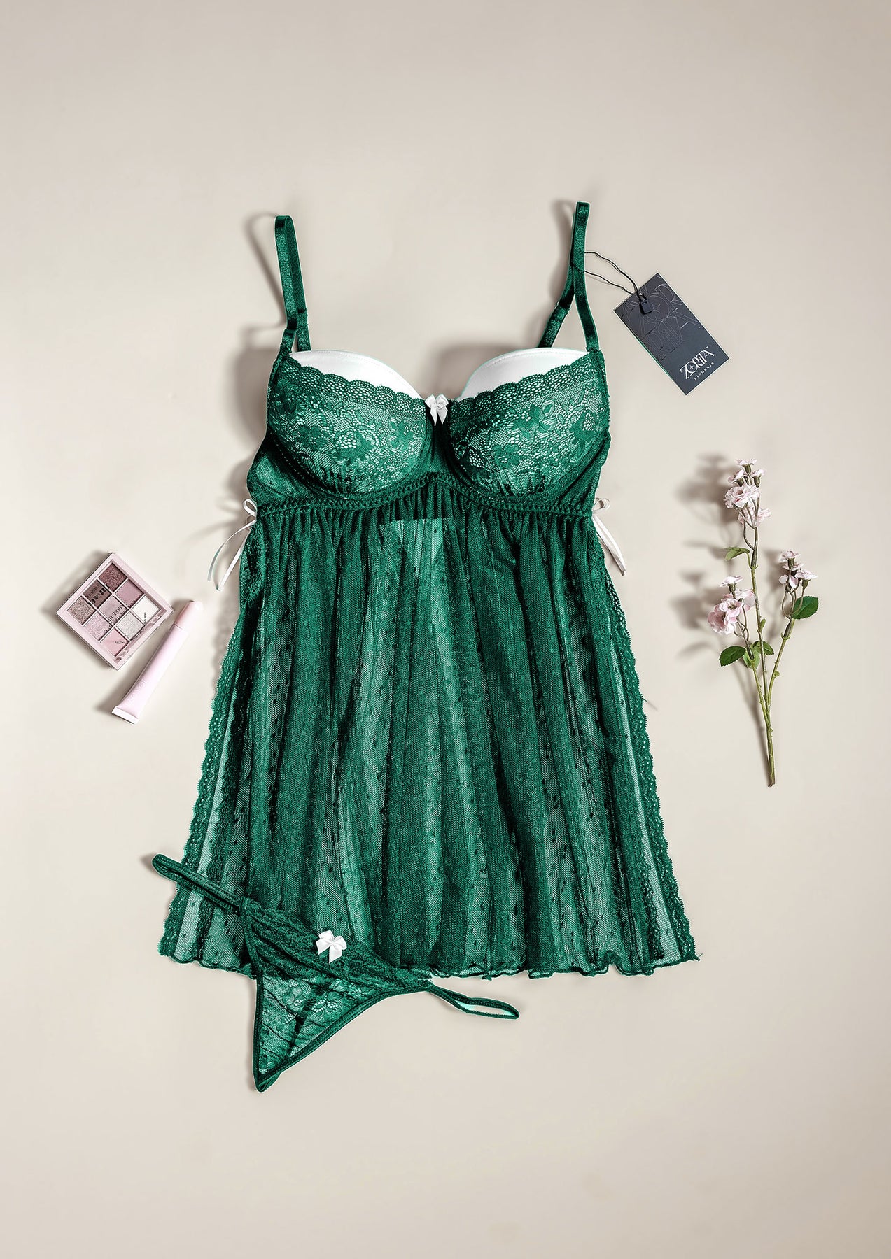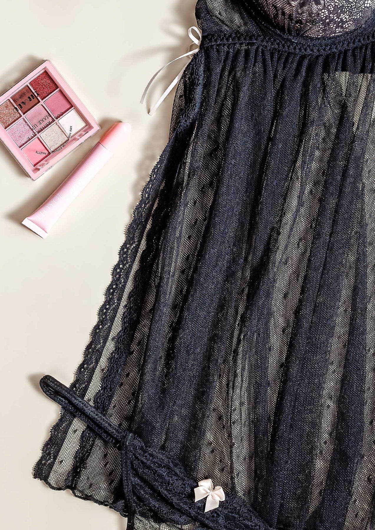 Unleash your inner allure with this lace babydoll. It glides over your curves, whispering elegance and confidence. Adjustable straps ensure a flawless fit, making you feel irresistible. Perfect for those moments when you want to ignite your passion and embrace your sensuality. (85% Nylon, 15% Spandex)