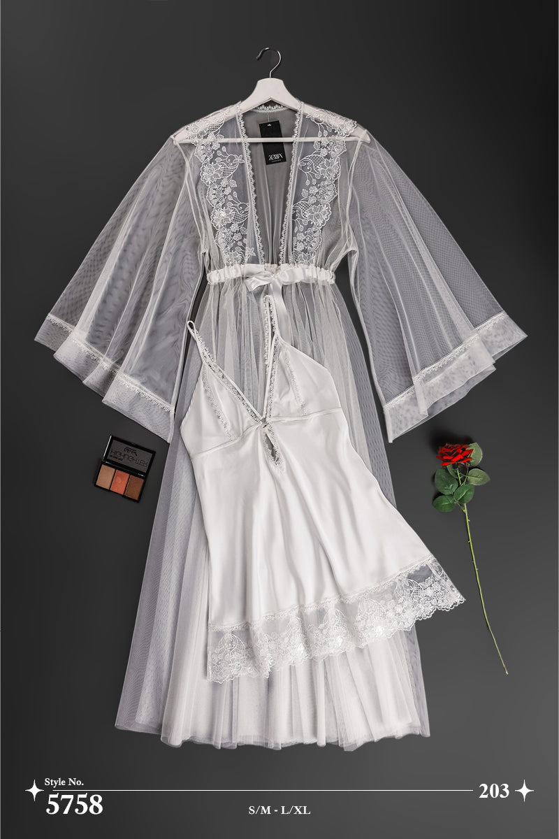 Feel radiant in this bridal lingerie set. The satin babydoll skims your curves, while the mesh robe drapes elegantly, accented with delicate lace. Perfect for your wedding night or a romantic escape, it moves with you, whispering elegance and intimacy. (97% Polyester, 3% Spandex)
